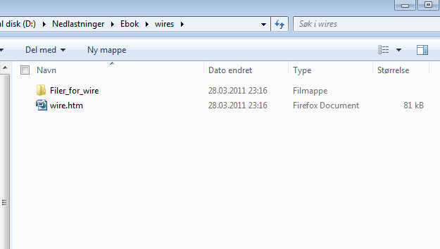 The extension is default .htm and any additional files will be stored in a folder in the same path as the main .htm. See attached screenshot of the saved file(s). I chose the name Wire" in this case. When I imported the .htm, the belonging folder did not tag along, so I manually put it into the same place/folder as "Calibre" stored the imported file. This worked as a charm, and I guess, since it did work, I'll continue do the .htm(l) file import and convert the same way. I can always delet the .htm(l) with the related file folder if I want, after a successfull conversion