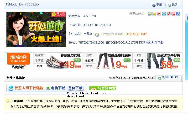 I upload it in u.115.com like troyme used above, cause i found this is the fastest site i can upload. http://u.115.com/file/f0176d7130# KINDLE_DX_rootfs.zip |
