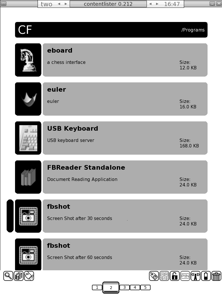 Dreams came true: Easy switching between open programs is possible. ![]() Screenshots are attached showing my iLiad session running Contentlister, 2 mrxvt windows, XBoard, & ipdf. When I click on a icon in the fluxbox bar this app get's in front. I'm so proud of this new effort. This is so sexy. I have the feeling I own a real Linux PDA. I'm so damn studpid. I compiled fluxbox is December, but I checked whether it is working today.[EDIT 02/15/08] Fluxbox installer is attached. ![]() [EDIT 02/16/08] The usage of hacked libX11 is not very clever. In Contentlister we get first refeshes by hacked libX11, then a full-screen-refresh. When you click with stylus on the area titled as "two" [it's the name of the current workspace] you will get the options menu of the toolbar [positon, clock setttings etc.]. to-do-list: # click on toolbar -> small screen refresh # simulation of 3rd mouse-click for action on titlebar [kill window, send to a workspace etc.] etc.. Last edited by yokos; 02-16-2008 at 10:07 AM. Reason: EDIT II |