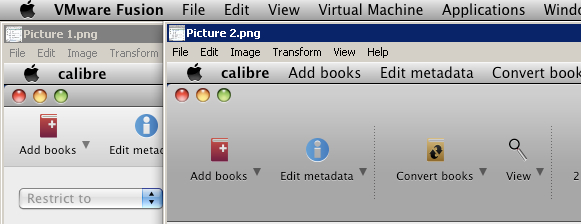 Ok, there are a few things going on here. First, when I posted my comment, I'd already re-installed 7.54 so was writing from memory of 7.55 and making some assumptions. I should have included screenshots, but I was assuming others saw the interface the same way I did. I'm now running both so I can do screenshots and compare issues. It is not 2.5x taller, but it is more than 5 pixels larger as can be seen in my screenshot. The difference is significantly greater when switching to small icons since the icon bar itself doesn't resize - see screenshot. Yes, I've restarted the app and tried changing other settings, but the bar doesn't resize. It's also not that there's extra space between the icons - they're all shifted to the right due to the extra gutter space, but when I loaded 7.55, the Help and Preferences icons were gone. When I reinstalled 7.54, they were back. I made the assumption without looking into it that they'd been 'pushed off' the screen. See screenshot. In fact, they're just dropped from the 7.55 interface, and I can put them back. I didn't even notice until now while comparing screenshots that you have added the Mac menu bar!! Thank you, that's what's been missing this whole time, and I can probably get rid of and get used to using this app without the icons anyway. One issue I did notice though is that the Preferences menu item doesn't actually allow you to load the preferences dialog box. For that, you have to go to Calibre/Preferences. That's confusing. When I made the 'unusable' comment, it was more in reference to dialog boxes (such as the preferences and the icon toolbar windows) also getting bigger, and outsizing my screen so the buttons on the bottom are inaccessible. See screenshots. I realize now that if I hide the icon bar, then pull up those windows they fit the screen and I can also resize them so they'll fit later if I show the icon bar again. Last edited by HaoleKai; 04-16-2011 at 05:15 PM. |