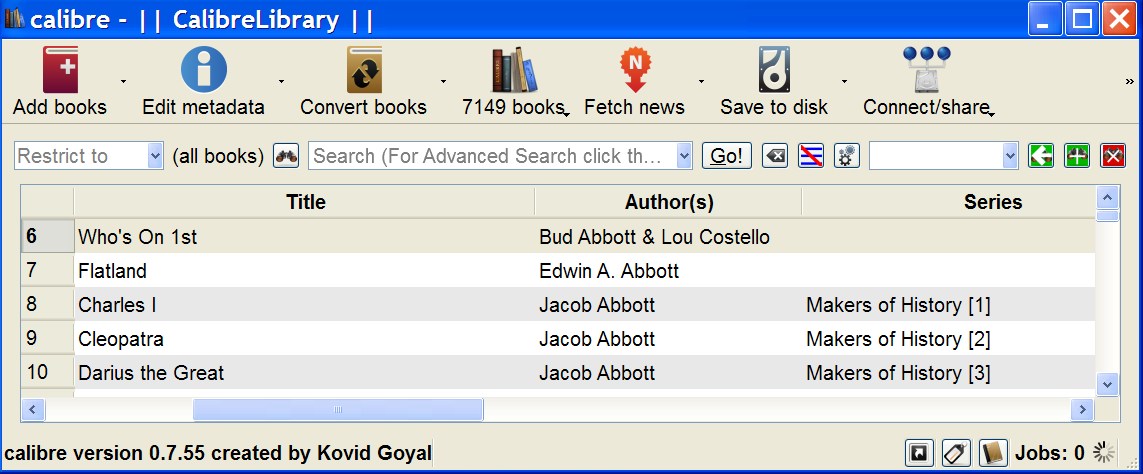 ![]() I tried eliminating the toolbar altogether, but I couldn't figure out how to do some things with only the menu bar. For example, if I'm connected to iTunes, I can see the library by clicking on the device menu item and selecting "show contents of main memory" or something like that. Normally, I would click on the Library icon in the toolbar to get back to see the contents of the Calibre library, but that doesn't work with the menubar option - I get the normal pulldown about switching libraries which isn't what I want to do. I think the library menubar item needs a "show books in main calibre library option". |