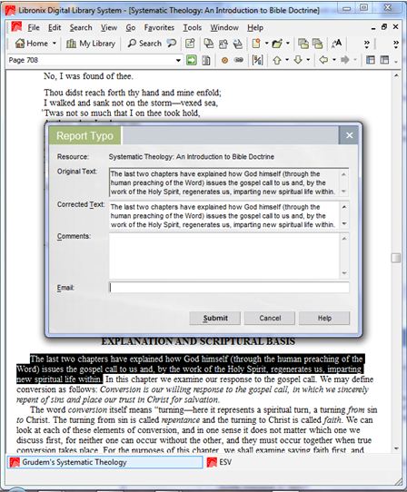 I decided to add pictures for clarity (no typos in the selected text). I wonder if the e-readers could pull this off--it seems like a strong possibility. Amazon could use the same window they use for selecting and searching text--you could highlight it and press the spacebar and hit, "Submit typo."