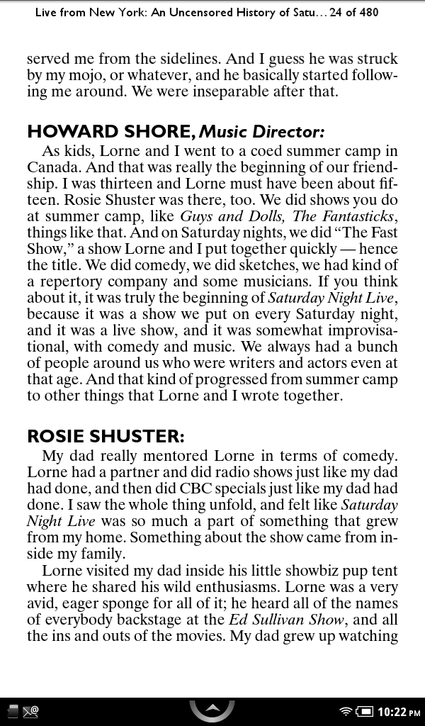 I've had the NC since it was released and have been through all of the settings many times and I had never noticed or had any issue with hyphenation. There doesn't seem to be any option on the NC to adjust justification, this could have something to do with it. As an example, I attached a screenshot from a book I bought from B&N with the publisher defaults set to on, so this is exactly the way it is meant to look with no fonts or margins adjusted. What I'd really like to know is if anyone else is seeing the same thing after the 1.2 update or it was always like this and I never noticed. |