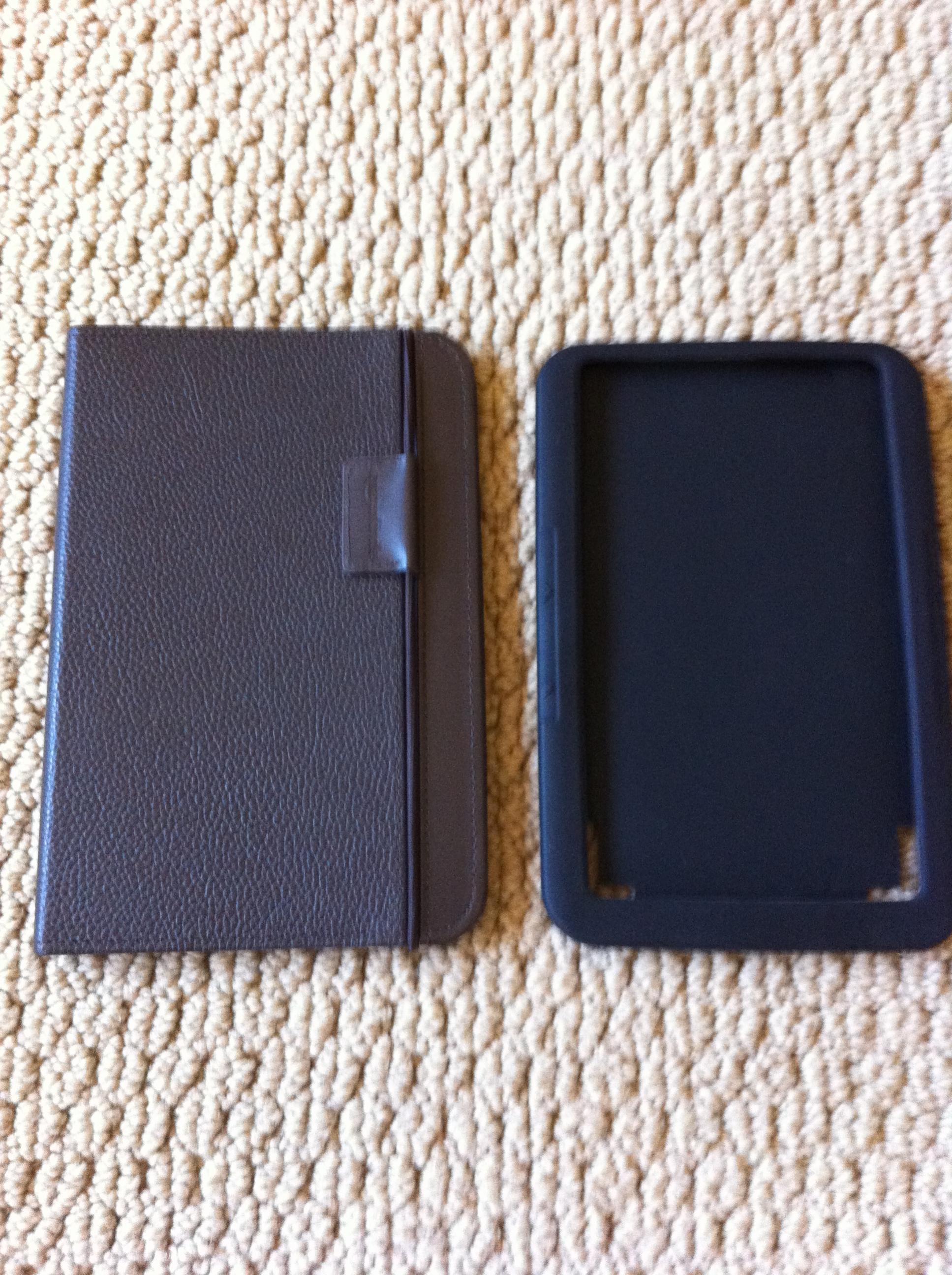 Selling a like-new brown leather Amazon Kindle 3 cover (without light) and black Kindle 3 skin (pictured upside down, whoops). Price is $20 which includes shipping to the US. Original price for both was $45.