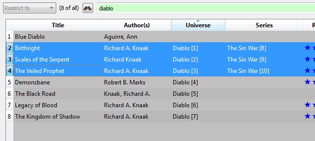I was downloading metadata on the Diablo novels, specifically, in correct chronological order: