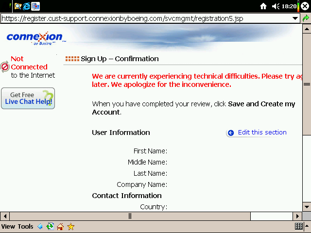 Btw, the IP I was surfing from was 216.65.237.211, which is part of the block reserved by Boeing for its Connexion customers: