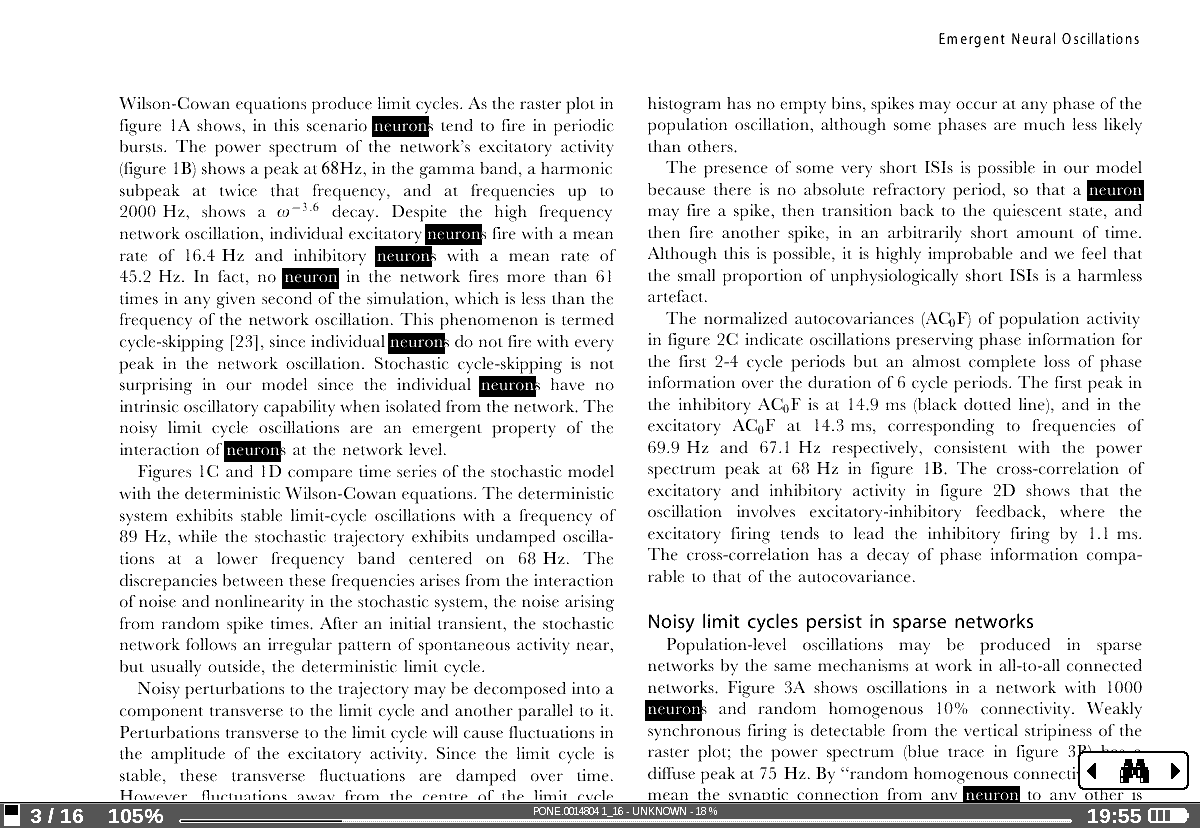 Search: adobeviewer took about 55 second (I was counting in my head ) to complete the search of the word "neuron": the words are visualised in the column, and if you tap on them you are sent to the relevant page.