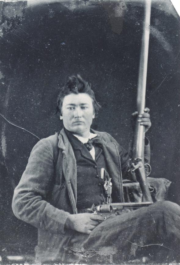 The second picture is posted on a "genealogy cousin's" site as an unknown man. Note the abundance of guns he is carrying.