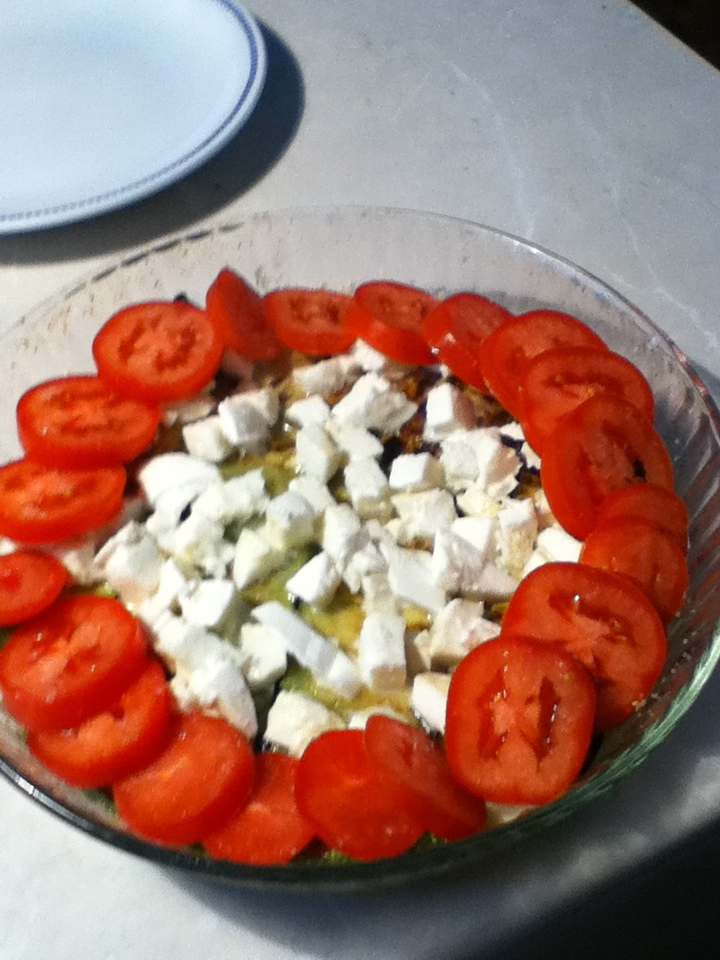 4) With great joy of Little Daughter, we cut in small cubes a mozzarella di bufala and layed on top of the dish.