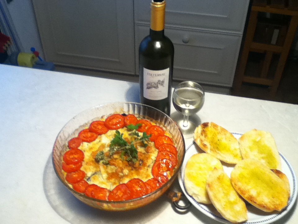 1) I cut two large zucchine in long slices (about 1 pound each, slices of 1/2 a centimeter). Put them on the hot grill on the stove (after lightly brushing them with olive oil). 2) I took a large glass pirofila, pomaded the bottom and the side with a stick of butter, covered with bread crumbs and thrown out the excess. Laid 2 layers of zucchine, sprinkled with salt. 3) I beat up two eggs, with 1/2 a cup of grated Parmesan, 1/2 a glass of milk and some salt. Little Daughter helped. Poured the egg batter on top. 4) With great joy of Little Daughter, we cut in small cubes a mozzarella di bufala and layed on top of the dish. 5) I cut two tomatoes in rounds and arranged them neatly around the dish. That is how it looked Attachment 72563 6) The oven was set at 200°C, no air. There it goes for about 40 minutes, till I could not see liquid bubbling. Than for 20 minute at 100°C, so that it became more solid. 7) In the mean time I split 3 rolls, toasted them, caressed them with a garlic clove and brushed them with olive oil. That is called bruschetta. It is needed to give the crubchy texture that is missing from the torta that is rayher limp by itself, although delicious. That is how it looks the torta, after baking. The herbs are thyme and parseley from the garden and some dry oregano. It shines because I brushed it with a bit of oil. Attachment 72565 The torta with the bruschetta Attachment 72564 And the table. Attachment 72566 Wine is that famous Chardonnay. Girls gave me full marks. All in all it took about 30 minutes of work with a 4 years all jumping up and down and having a lot of fun. These are the ingredients: for the torta 2 large zucchine (zucchini in English) 1 mozzarella (of bufala preferably, but any melting cheese will do) 2 eggs 1/2 glass of milk 1/2 cup of Parmesan cheese 1 tomato 1 piece of butter (to spread on the pot, but any fat will do) 3 spoons of bread crumbs for the bottom herbs (oregano, thyme) for postprocessing salt for the bruschetta pieces of bread toasted 1 clove of garlic olive oil (tiny bit) salt Last edited by beppe; 06-10-2011 at 09:52 AM. |