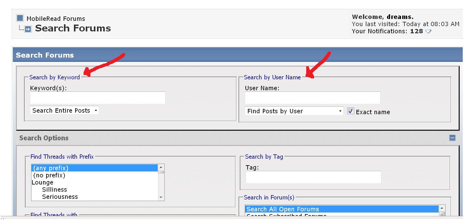 ![]() A quick way for "your posts" also. At the top of the forum page (in the blue bar), just click on "New Posts", and scroll down to "Your Posts". To search - At the top of the forum page (in the blue bar), click on "Search", then scroll down to "Advanced Search". |