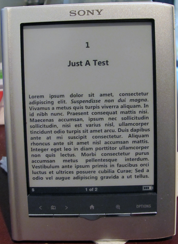 To sum up, it is ridiculously easy to change fonts on the Kobo Touch (and I assume the Nook STR too) but a major pain with the Sony Readers, although both or capable of allowing custom (sideloaded fonts). With the Kobo Touch sideloaded fonts are a FEATURE whereas they are only achieved on the Sony by performing a hack or two. Hopefully these photos can help you judge the font capabilities of the Kobo Touch. Here are the photos: