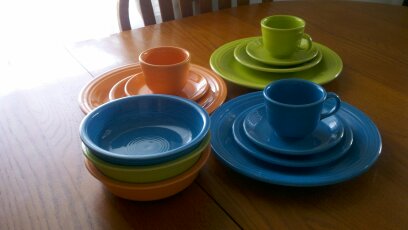 The pursuit of Fiestaware has begun! Colors are named Tangerine, Lemongrass, and Peacock.