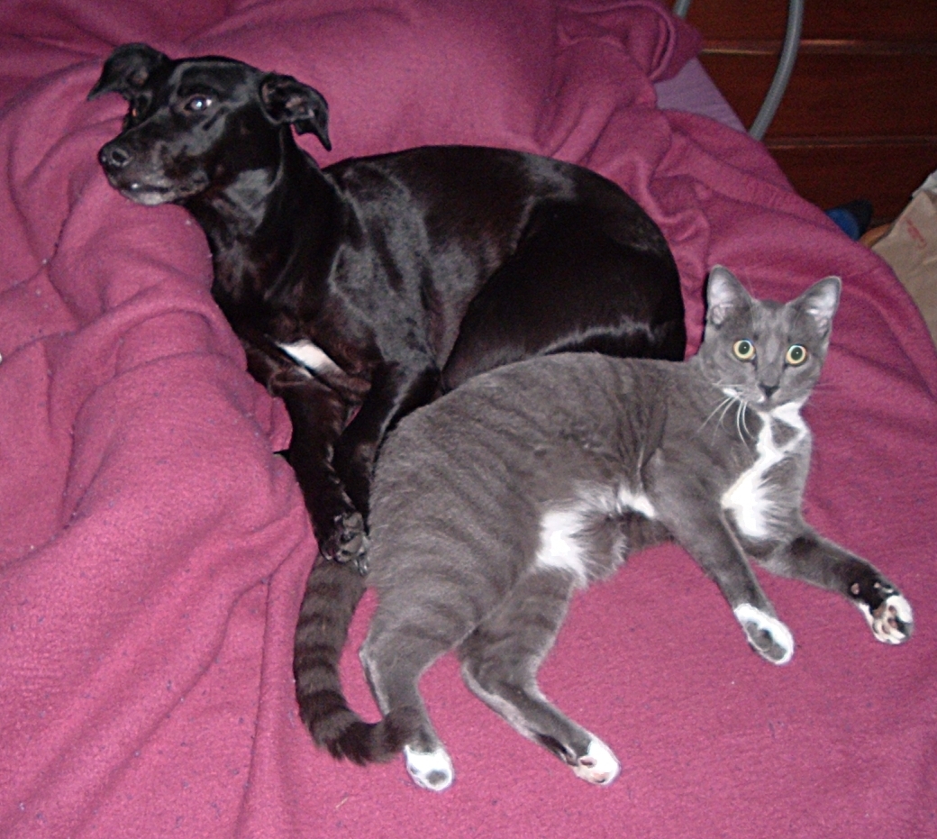 Shana (dog) and Dash (cat). Separately adopted from shelters.