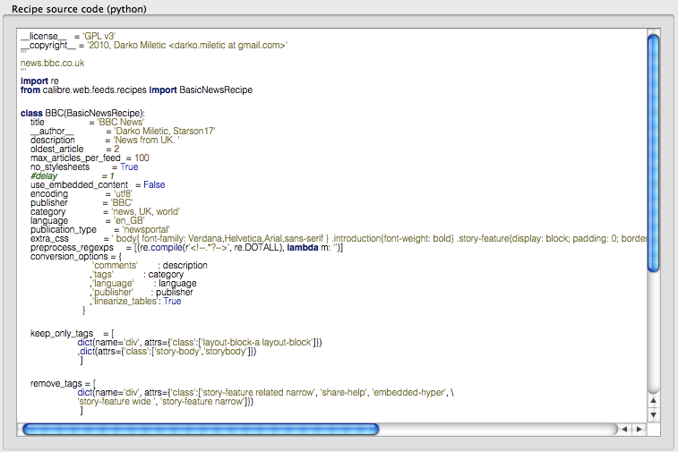 This may be an os-specific issue. On Linux, the editor uses a reasonably sized monospace font, but on OS X it's a small proportional font that's quite difficult to read (screen-grab attached, Mac OS 10.6.8 and Calibre 0.8.11). Changing the interface font in Calibre's preferences had no effect (even after restart). Thanks! |