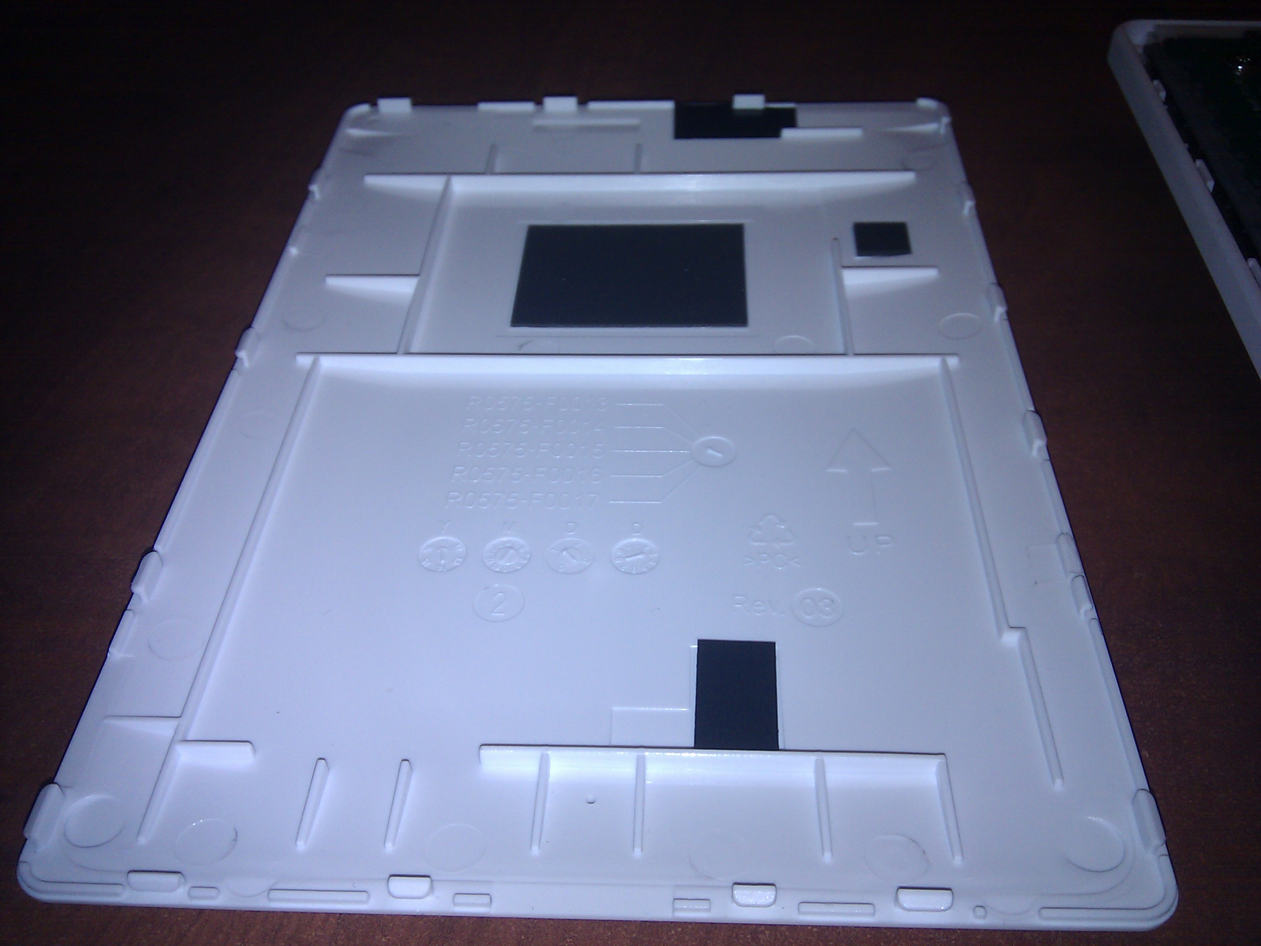 I am getting a little tired of my plain white kobo so I was thinking about maybe giving it a nice custom paint job. In anticipation of that I decided to see how hard disassembly would be. Turns out it was pretty damn easy. Pry off the back cover and remove 11 screws and you are in business.