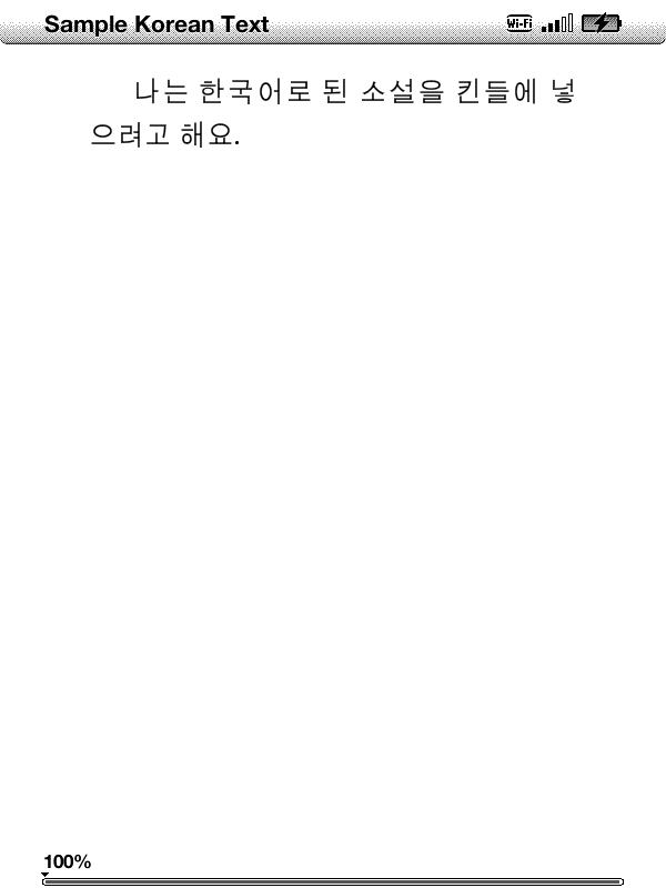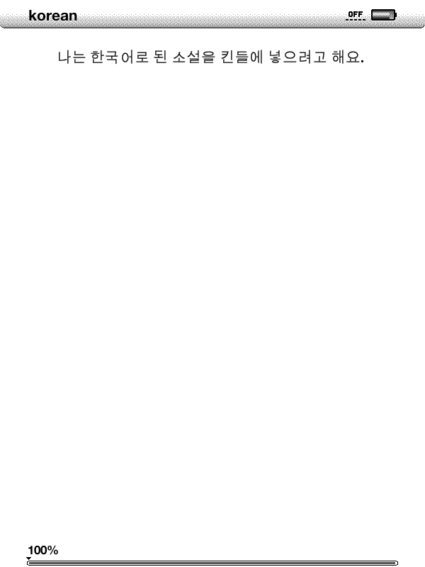 as shown above, any versions of kindles don't support appropriate "spaces" between words in Korean language except original Kindle DX. exactly speaking, no spaces between words. I have some electronic novels which are written in Korean. the novels all have .txt extensions. I tried to change those .txt files to mobipocket and epub files using Caliber and made transformed forms. but I couldn't find any spaces between words in the transformed ones after changing them into epub or mobi. As another thing I try to solve the problem, I used the conversion and download service provided from amazon.com that is the one using "name"@free.amazon.com. It neither couldn't solve the problem. It was same as the upper example. I know most kindle users are from English speaking worlds. some readers even may not understand what I mean. but I couldn't find any hints for me from Korean websites or other Korean forums. I just want to read a looking good pages when I "sync the latest pages" between my devices such as macbook and iphone and I hope that there's anyone who can solve this problem and share her or his ideas. Anyone among those who are reading this? Help me! |