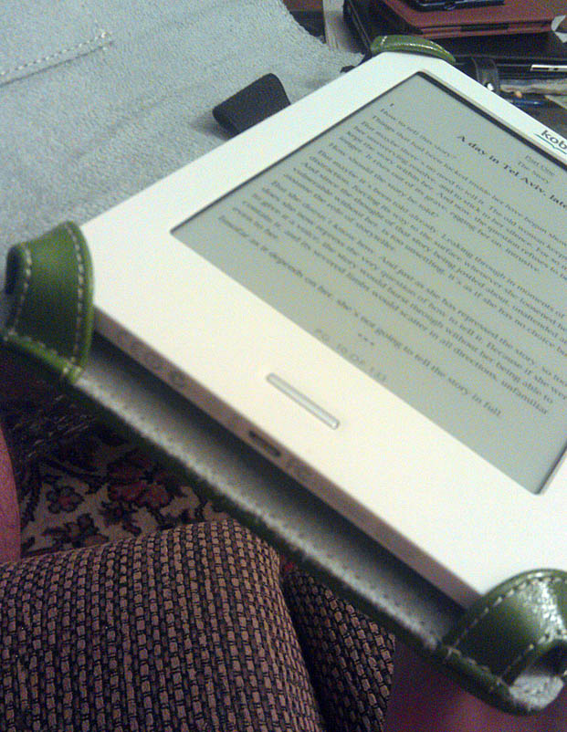 And I have to say, it actually does a pretty good job of holding the Kobo Touch. It's very slightly loose, but only just enough that the Touch might shift slightly if you push the top switch without bracing the reader with your thumb. However, under normal circumstances, the Kobo isn't going anywhere. And actually, adding a little bit of padding between the bottom straps and the reader would go a long ways towards keeping the Touch rigidly in place. The jacket itself is a little on the heavy side (quite a bit heavier than the Touch, in fact), but it's very, very protective. A good reason for option for the M-Edge case for the PRS-600? Due to the age of that model, and an apparent over-abundance of M-Edge jackets, they can be had on eBay for 7-10 bucks (shipping included), depending on the color and seller. Attached are a few pictures to give a better sense of how the Kobo Touch sits in the case. The top right strap slightly overlaps the switch, but the switch can still be activated quite easily without moving the strap at all. Last edited by nesler; 08-08-2011 at 06:59 AM. |