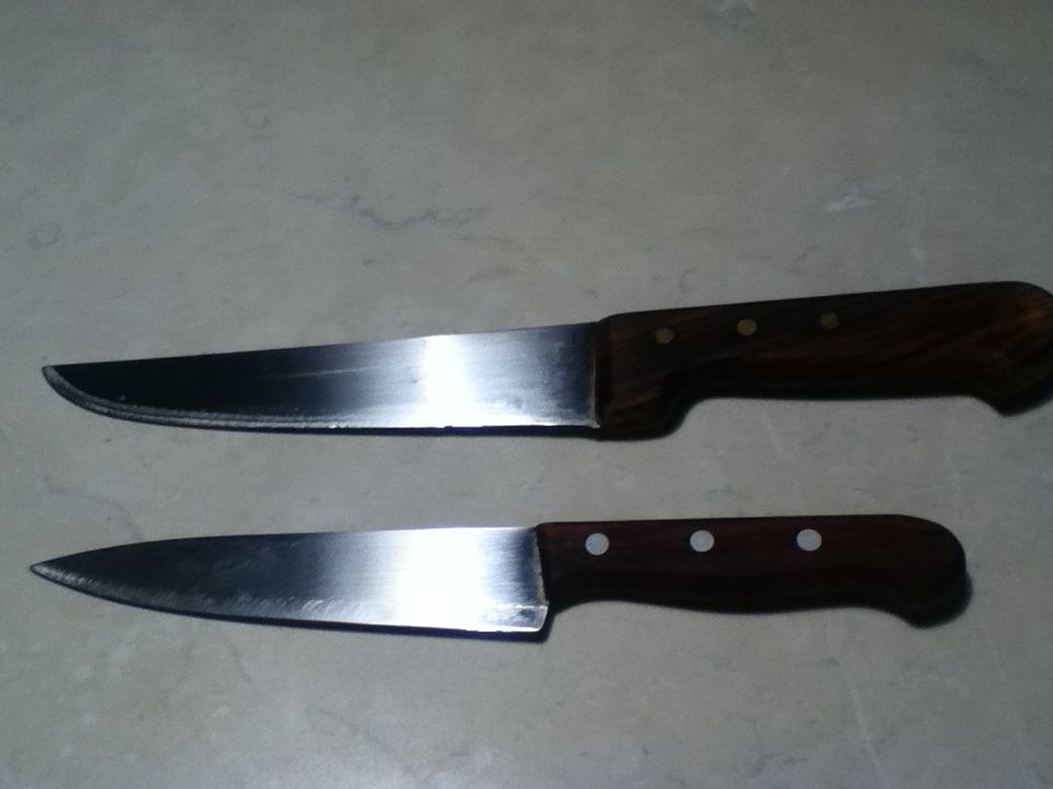 The larger one is the old Victorinox of my mother. It's a good knife, but as a chef's knife I prefer the smaller one. BTW Marc, what are antaloons? Something speakable? Something to do with hymenoptera? you know wasps, bees, ants ... Sorry. |
