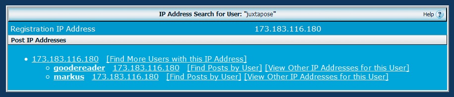 This is your first and last warning. We expect civil behavior here at MobileRead. You have given ample reason in your past posts to deserve a ban. The only reason i have not yet done so is that we have a rule that you are supposed to receive a warning first. (That, and I thought we might get past this and you would be civil. My mistake.) Guess what i just learned? You are a sockpuppet for Goodereader.com. Bye-bye now. If anyone wants proof, please see the attached image. This member visited from the same IP address as that blog. Last edited by Nate the great; 08-09-2011 at 11:06 PM. |