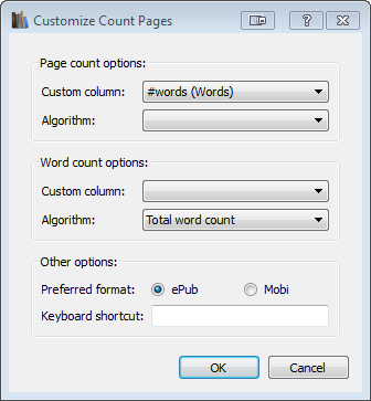 ![]() Regarding the "FAILED TO COUNT PAGES" errors and updating: After updating to the latest 1.3.1 (from some early version, albeit one with word count, unfortunately I replaced it and don't remember exactly) I got this error with no traceback. It turned out that my custom column had moved from Word count options to Page count options, see attachment. I don't use page count (which now had the #words column configured), and Word count suddenly had no column configured. Of course it's easy to fix if you know about it, but there was no hint about this in the error message making it a bit confusing. I am completely sure that I didn't change anything myself. I guess this is due to a stale configuration, in config.py from the updated plugin the keys are named Code: