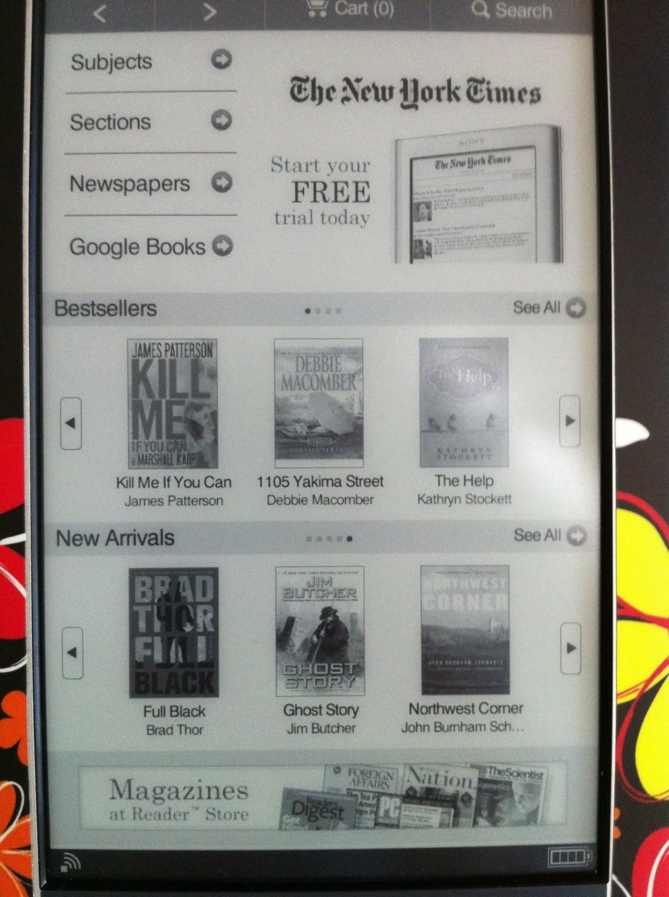 One photo shows the home screen, another photo shows the details of a particular book, and the last photo shows what Google Books public domain looks like. You can see that when browsing the store it gives you quick links to similar books or other books by that same author. You can even add a book easily to your wishlist. You can also add multiple items to a shopping cart, whereas other readers do individual purchases. Some books in the US have excerpts that you can read, but they currently do not have downloadable samples to read offline like other brands. Hopefully they add that capability.