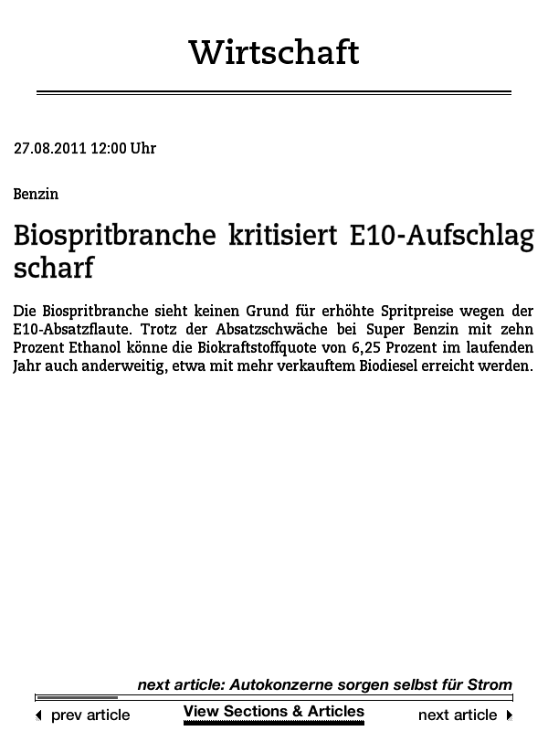 this is great! Until now, I not even knew that I would miss it! ![]() Thank you! But one thing, I don't like. And I don't know if this is a bug or a feature. ![]() At the beginning of every new section, it starts with a small section-TOC just above the first article of the section. But only if I use the pageturn buttons. If I use the Kindle 5-way, it only shows the article. Maybe the images explain what I mean. The first image shows the first article of a new section when I use the 5-way to change between articles. It looks OK. The second image shows the first article of a new section when I use the pageturn button. The red box shows the small TOC. I don't like the small TOC above the new article. I would either prefer a seperate page at the beginning of a new section, or no seperate TOC at the beginning of a new section. Bratzzo |