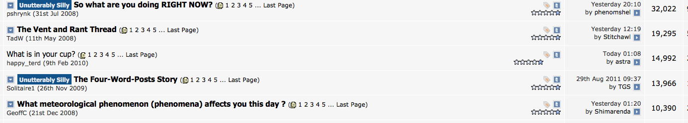 apart from this thread (which I now just simply adore), this place is getting sicker by the minute. And not necessarily because of the posters.