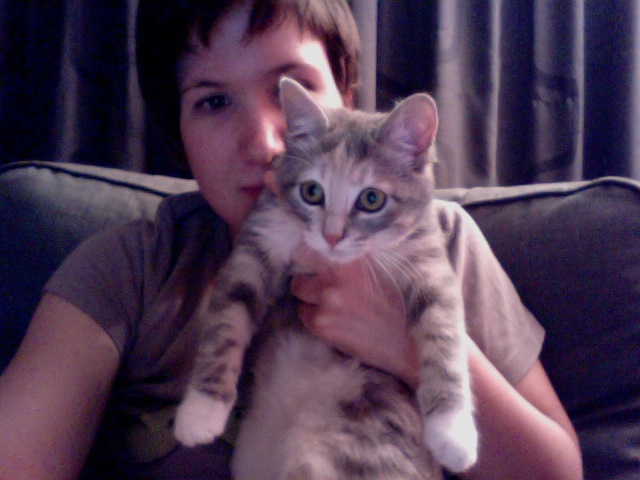 Have I told you Oni has become very cuddly lately? She lies on my lap every night Her latetst favourite game is chasing the mouse on my laptop screen She's grown so much! Here's another picture for you guys (got her in some kind of chokehold, she wouldn't sit still )