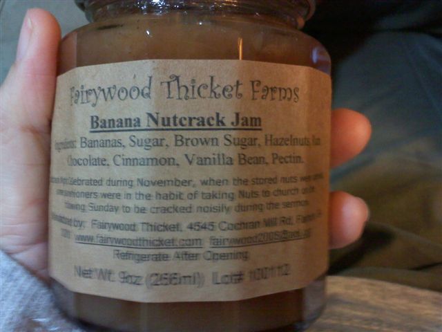 In my cup: Greek yogurt with a spoonful of this (Banana Nutcrack Jam) mixed in. Oh my -- I bought it at the farmer's market yesterday, and it is sinfully delicious. And really -- chocolate? hazelnuts? rum? Why wouldn't it be sinfully delicious?