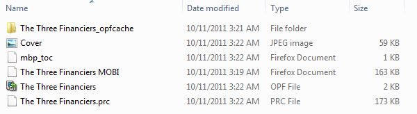 I've used Mobipocket Creater (publisher edition) to create my publication, however once I have all these files, I want to upload them (as a single file) onto the web for others to download. Similarly, to add a book to a device, it's my assumption that you should simply drag and drop a single file - but how do I create this single file? When I create an EPUB file, it's all in a single file, which to me seems the way it should be. I've attached a picture of the files Mobipocket exported - can anyone please advise on what to do with these files? Thanks! |