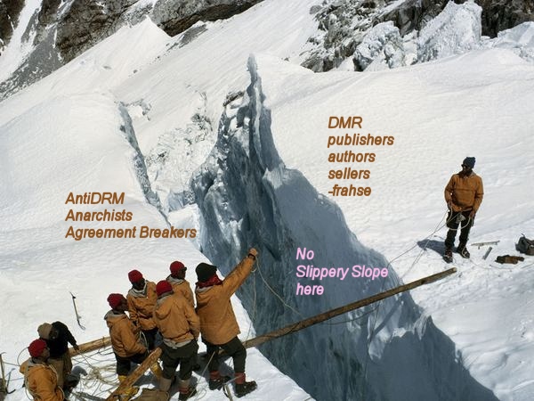 Just as I said to teh603, that there was only a slight brush of air from what she supposed was a "hammer." That was intentional. I don't want to hurt people, even if they have hurt me. But on the other hand you speak of "emotional investment." Don't you think that I have an emotional investment in some of the books that have, by my reasoning, been purloined from me, and then bragged about by the people that did it. What many here don't realize is that digital books, electronic readers, electronic copies of books at libraries are all made possible by DRM. No DRM, then none of that would exist. Now would piracy exist? Yes it would, but that doesn't excuse the DRM stripping piracy. |
