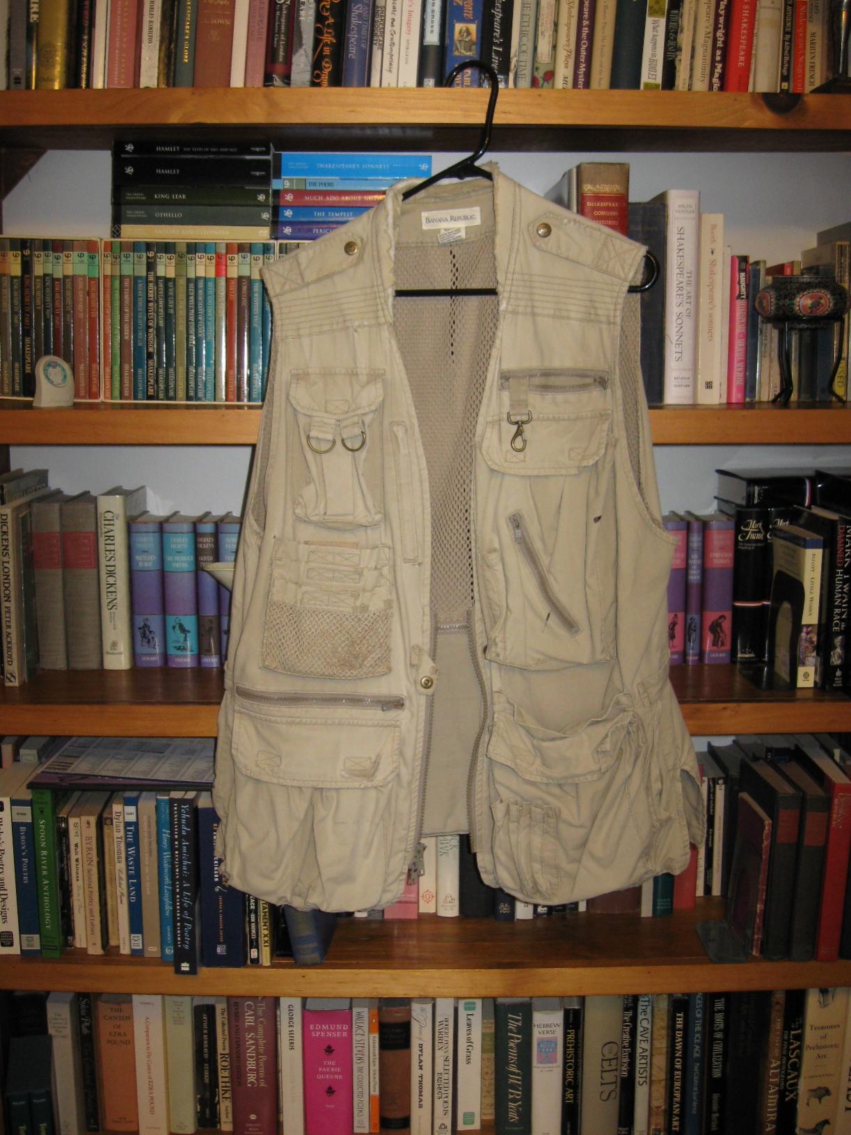 This is what I use sometimes. It's my old Banana Republic photographer/fishing vest. Note: this picture is not mine but my vest is the same. I also have one in blue.