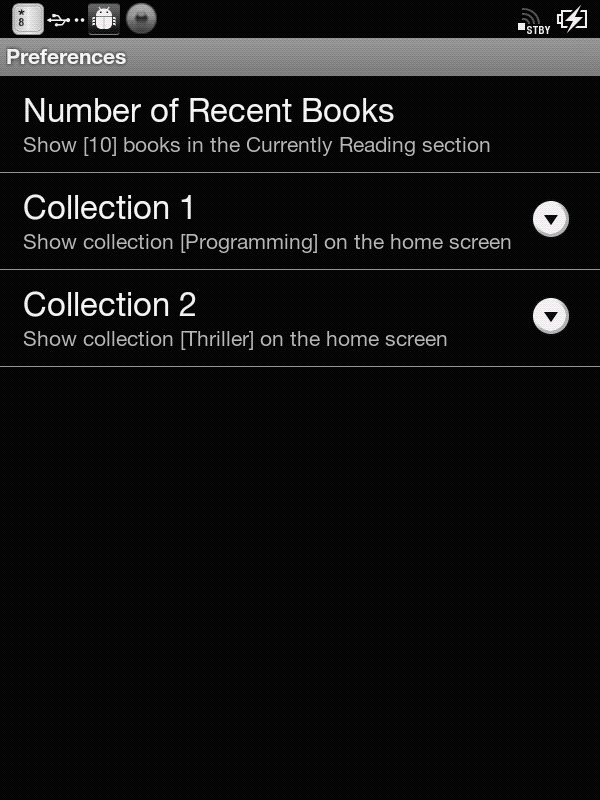 okay, I;m thinking of keeping the home screen very close to Sony's. but having a horizontal scrolling "currently reading" list and allowing you to choose 1 (or 2) collections to show in horizontal scrolling lists below that.