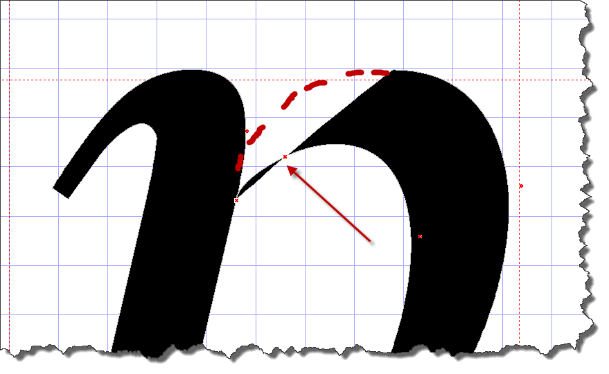 I tried to make a bold version. But I desided not to finish it. Reason: If you have a closer look at some letters, you will recognize errors like this one (p): It would be much work to solve those errors. Making the font bold requires to do that. Otherwise some letters will look very strange after transformation. Sorry. Last edited by Analogus; 11-06-2011 at 12:22 PM. |