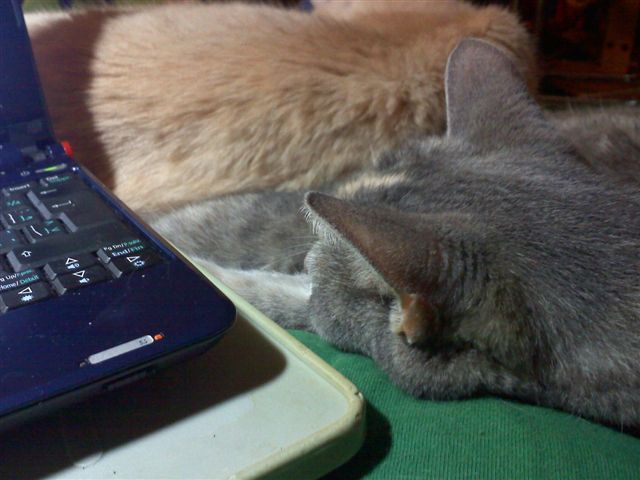![]() my kitty is sitting in the hallway looking @ me. Good he has gone for a nap (he needs a rest from lying around napping all day) I have to keep him in for another 2 hours because he has to go to the vet for his annual needles and check up and stuff. |