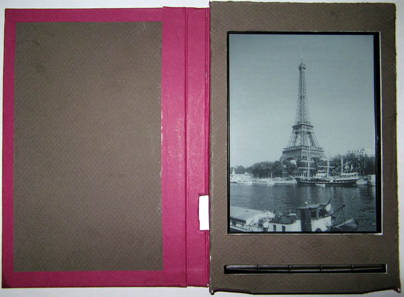 I made a custom case for my PRS-T1 with three pieces of strong cardboard, colored paper (both CANSON), two strips of gauze to link the 3 pieces (under the paper) for the articulation and some white paper-glue applied with a paintbrush. The bottom has a large opening for connectors, power and reset buttons. A smaller opening on the left side give access to the micro-SD card slot. The reader slide in the cover by the top (closed by folded cardboard). The cover isn't too heavy (73 grammes or 2.57 ounces). Its dimensions are 117x177x15 mm (4.6x7x0.6 inches). I need to apply spray plastifier (plasticizer ? not sure, "plastifiant" in French) to protect it against humidity. I'm not too happy with finishes (glue traces, some measures slightly off), I'll probably try to make a better one with the remaining materials. I'll take some pictures during the assembly just in case someone is interested. Last edited by seabee; 11-22-2011 at 06:23 PM. |