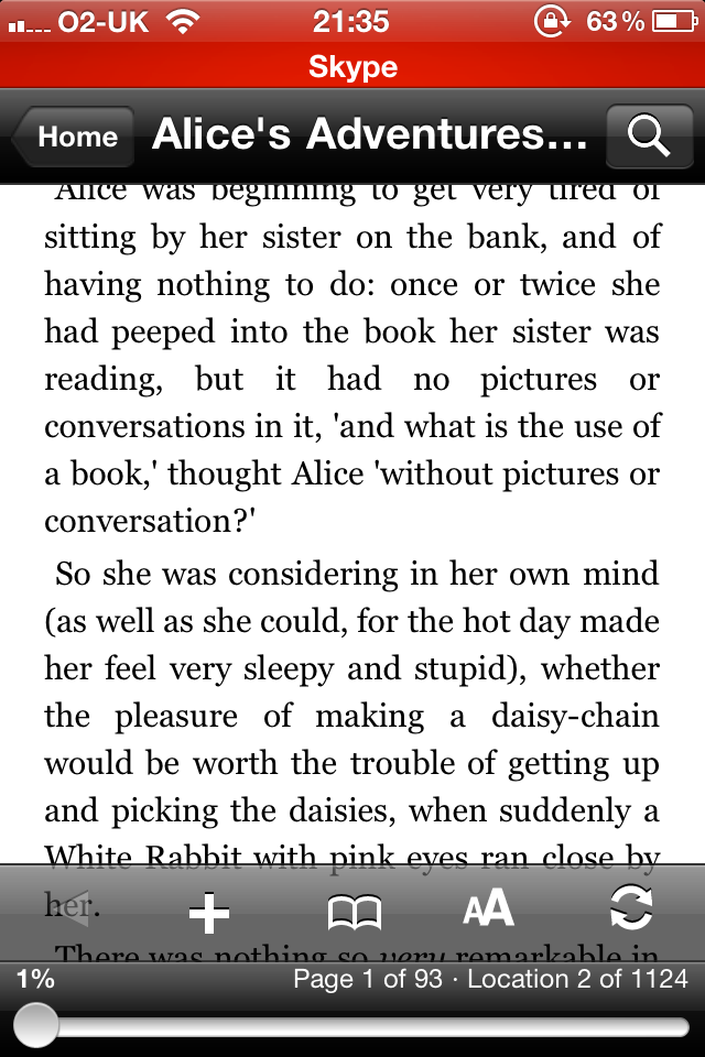 Tap the screen when the book is open to get the controls up. Note: this image is from an iPhone, but it should look virtually the same on an iPod touch. Last edited by Daveoc64; 11-23-2011 at 04:40 PM. |