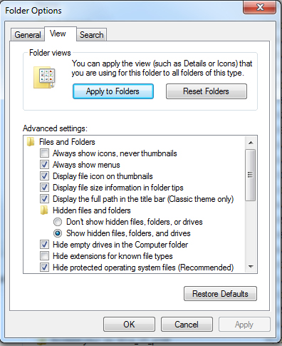On the lefthand image you attached above, 'Hide protected operating system files' needs to be unchecked as well, I believe. You'll get a warning message when you do this but you can ignore that. Also you may notice 'desktop.ini' files showing up everywhere; they can be deleted if they bother you as long as you haven't customised any folders, or you can just let them be. Personally I delete the ones which sometimes appear on the desktop.