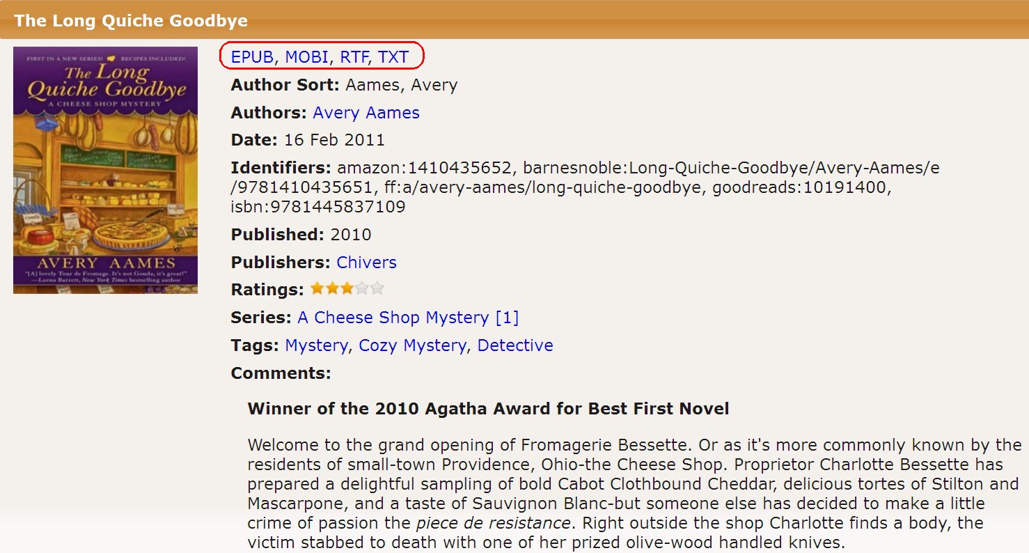 When I view through the book through details, permalink or moble all the formats show. (see pictures). Also is there a way to set what format the get button downloads? Thanks in advance. |