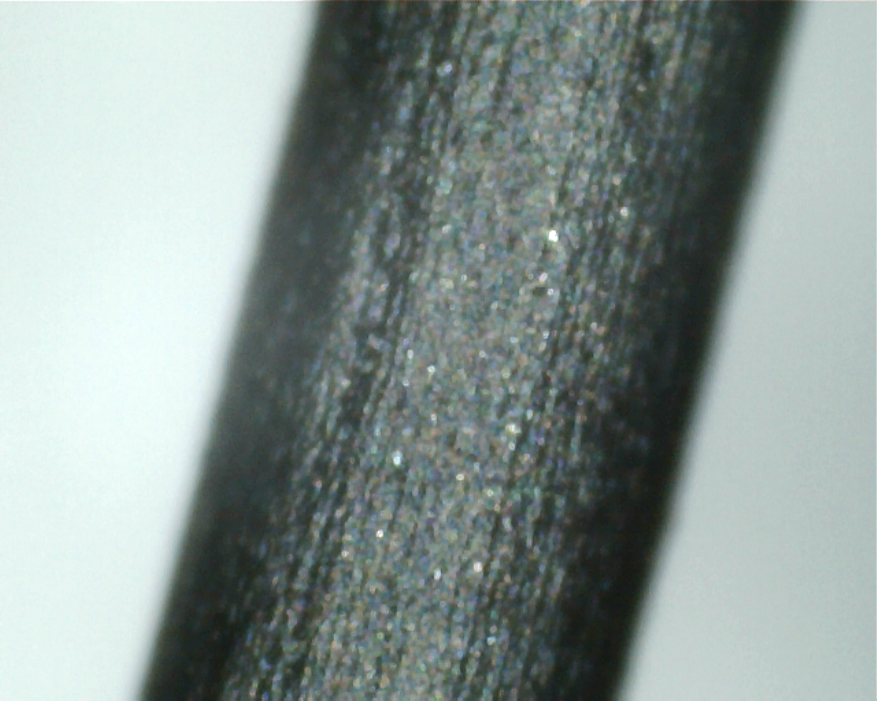 It's 400X magnified lead of mechanical pencil. (Metallic lustre of lead makes it shine even on rough surface)