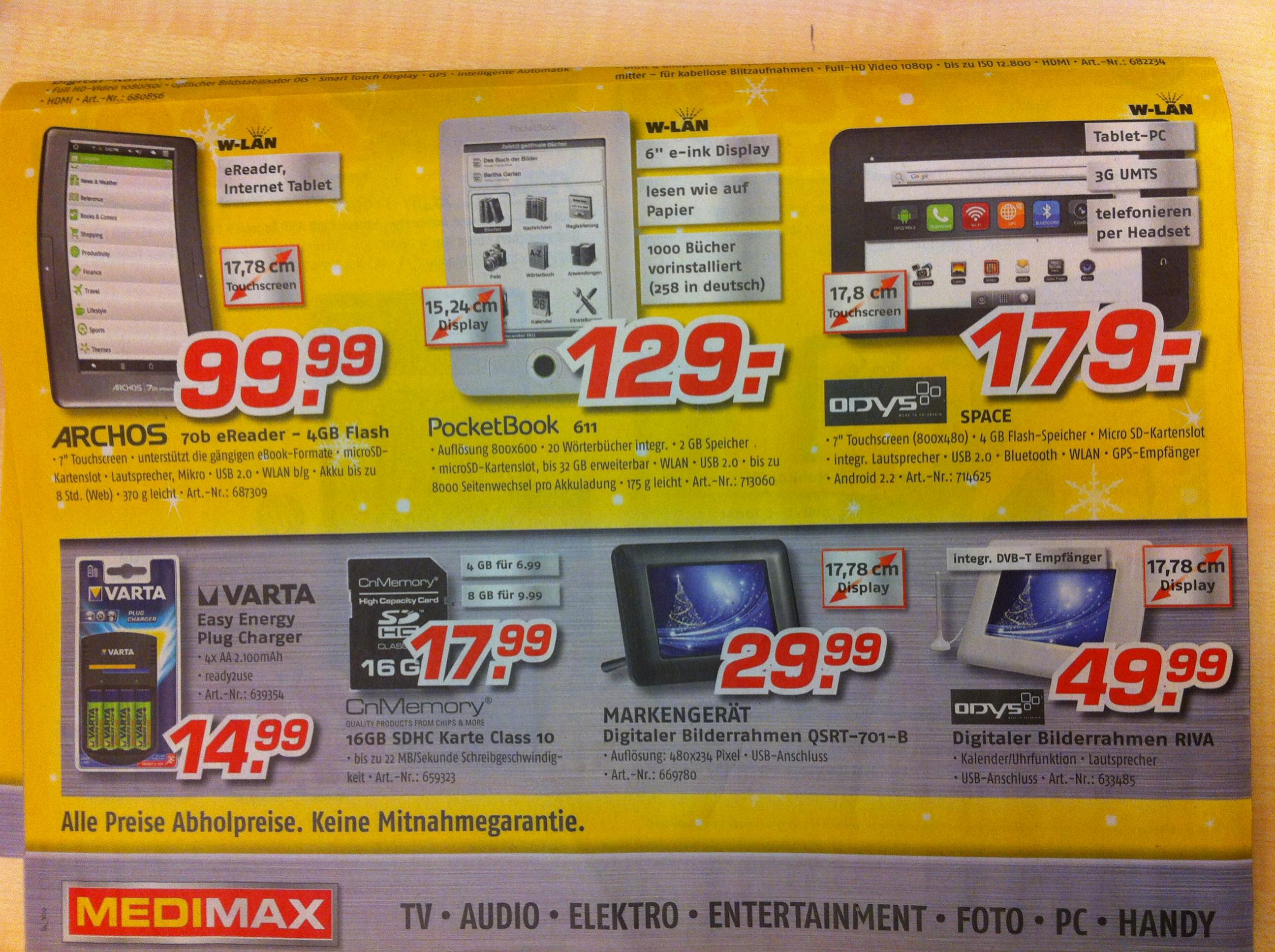 Ab Freitag, den 16.12.2011, kann man Pocketbook 611 in jedem MediMax in Deutschland für 129 € erwerben!
