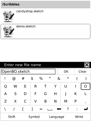 Scribbling in OpenBOOX is a bit more flexible. When you create a new scribble you have to give it a name: The home screen has a Scribbles category containing all the scribbles you created. You can rename them by selecting Rename from the File menu: At this moment there is no search function. Check the Tools menu from within the scribble application for the export function. | ||