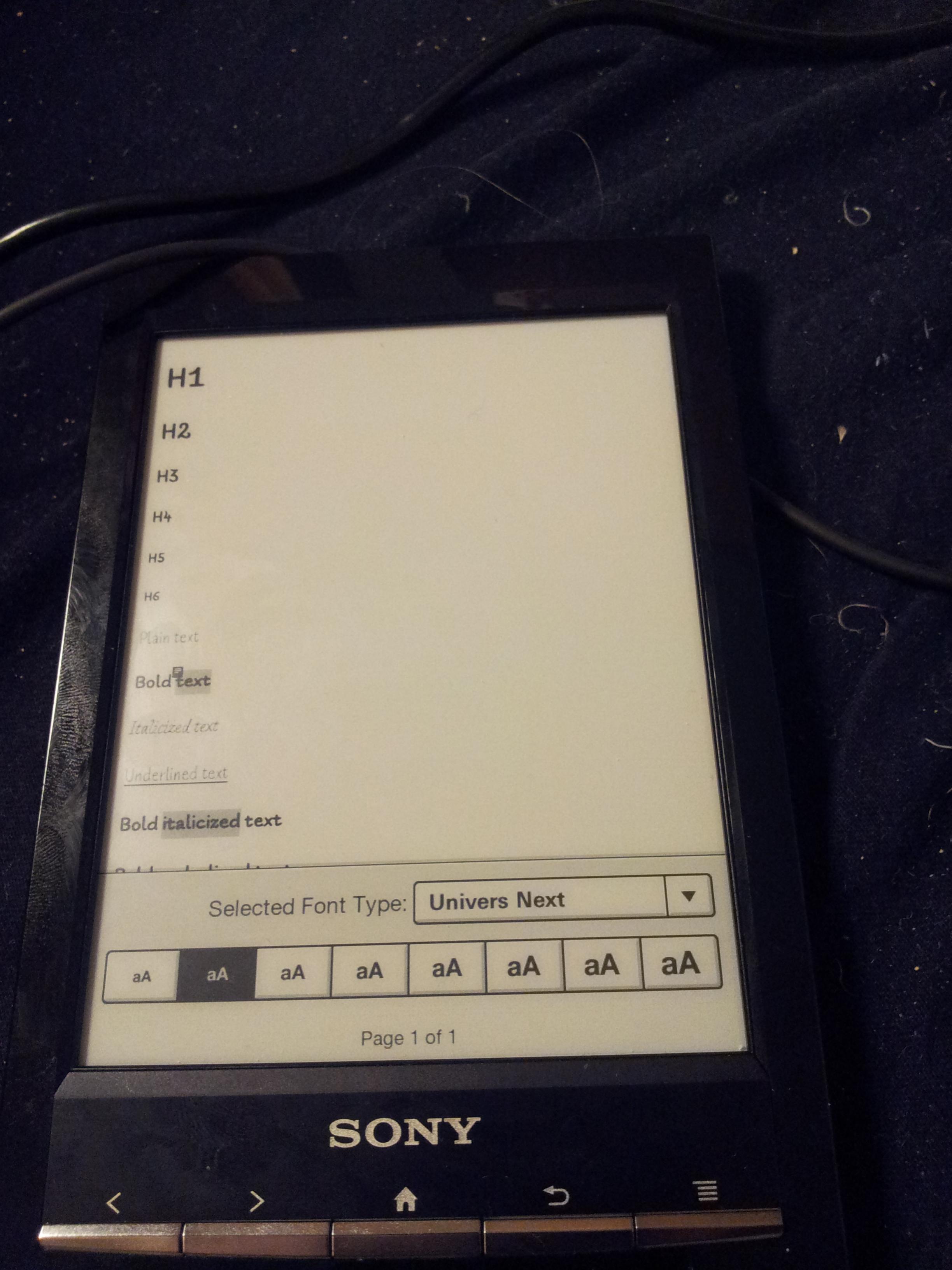 Device: Kobo Aura HD, Kindle 4, Sony PRS-T1 (formerly PRS-500 & 505), iPad Air