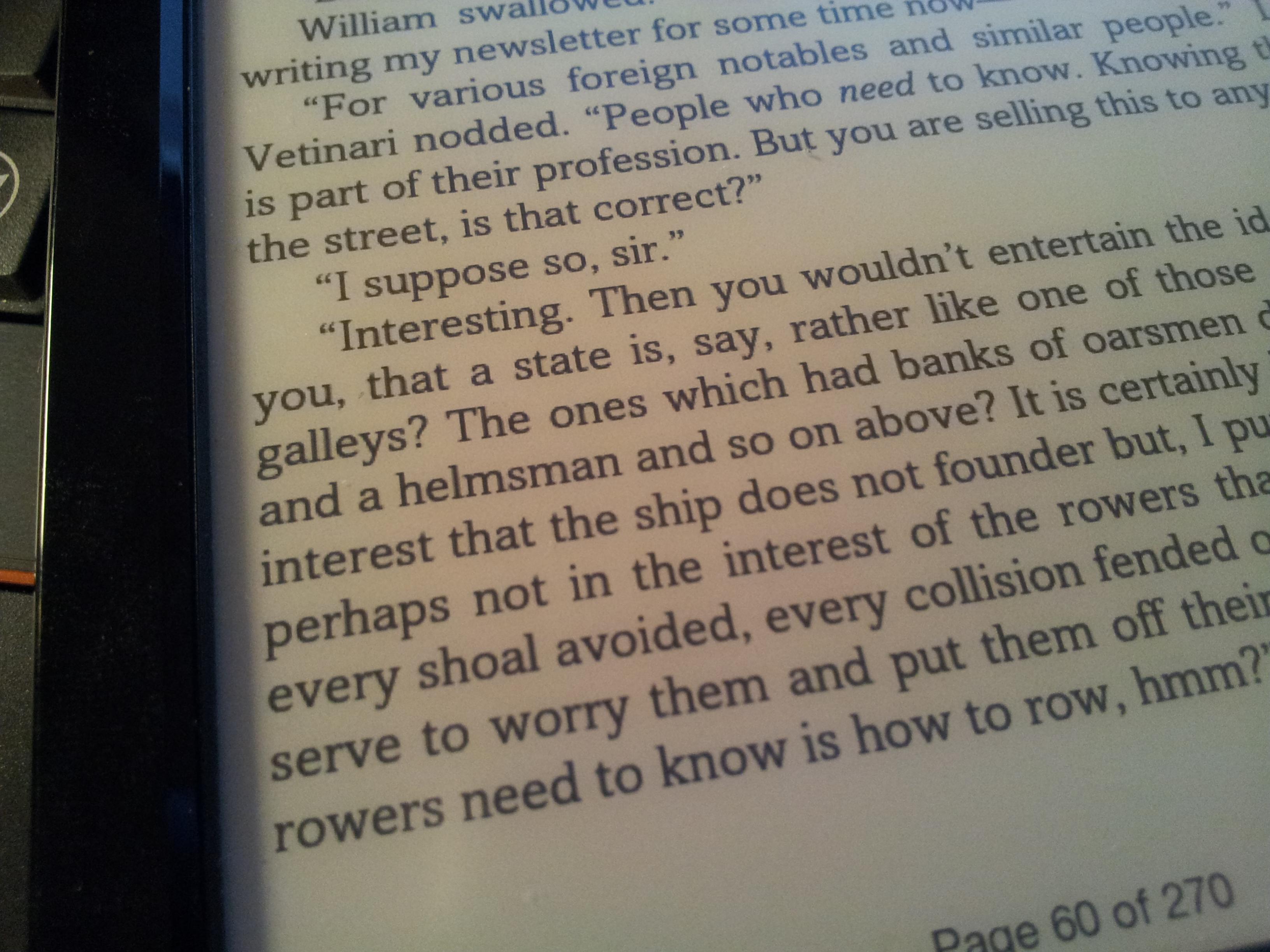 Trying to find out how to do things without flashing the screen was actually the reason I first started dissecting the PRS-T1, but I never got around to checking it out. I am still very interested in doing it though. I'm thinking something like an optional "ugly but fast mode" in the home screen and "refresh every N:th page" when reading.