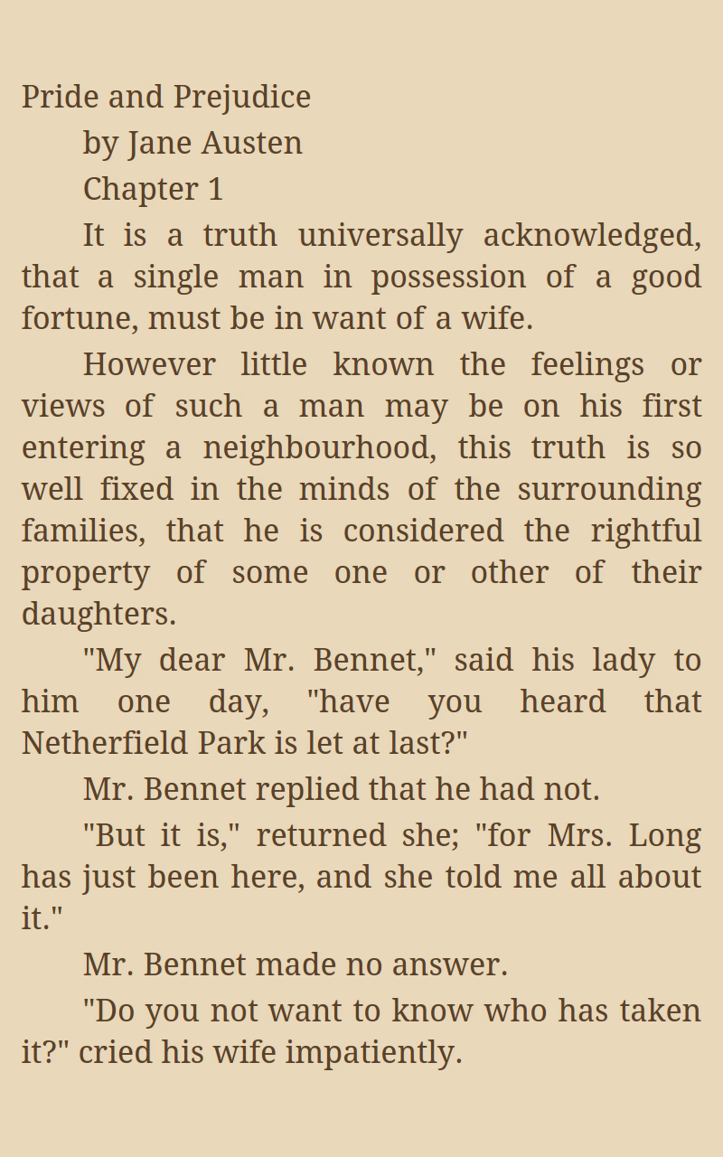 Stanza also excels in the ability to put background picture, ability to adjust font size, change font color, etc. I'm not sure if I want to forego Kindle because I can look up words in dictionary a lot faster. Kindle's largest size is readable and one can get used to it, but after reading on Kindle when I go back to Stanza I'm surprised at how much my eyes are relieved. I'm guessing that small a size as Kindle app provides would put a constant straint on the eyes and would aggravate eyesight. Last edited by automa; 01-29-2012 at 11:54 AM. |