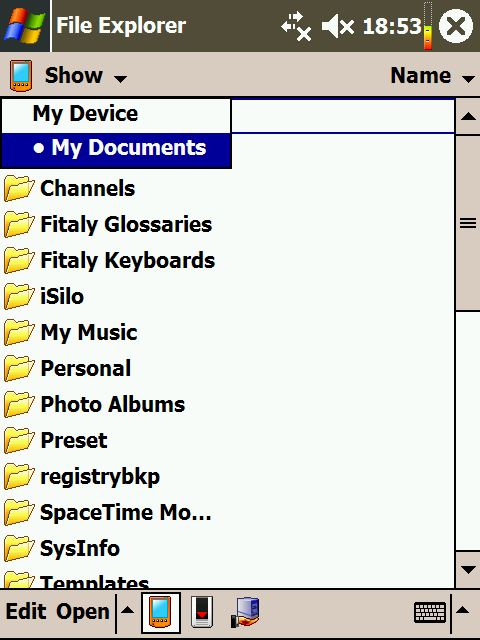 When you start File Explorer, you first see the content of "My Device". This includes one folder called "SD Card" which holds the content of your inserted SD Card (Screen001). Let's say I want to copy a file called Note1 stored on my handheld in "My Documents" to the root directory of the inserted SD Card. To do so, I first browse into "My Documents" (Screen002). Then I go to the file Note1 and click on it (I must hold my stylus on it for a second so that a context menu can appear). I then choose "Copy" (Screen003). Now I go back to the root directory of my handheld "My Device" and browse into the folder "SD Card" to actually access my SD Card (Screen004). I go to the directory on my SD Card where I want to copy the file to. In this case, I will choose the root directory. I then click on Edit and Paste (Screen005). The file Note1 from my handheld is now on the SD Card. Hope these steps are easy to follow. |