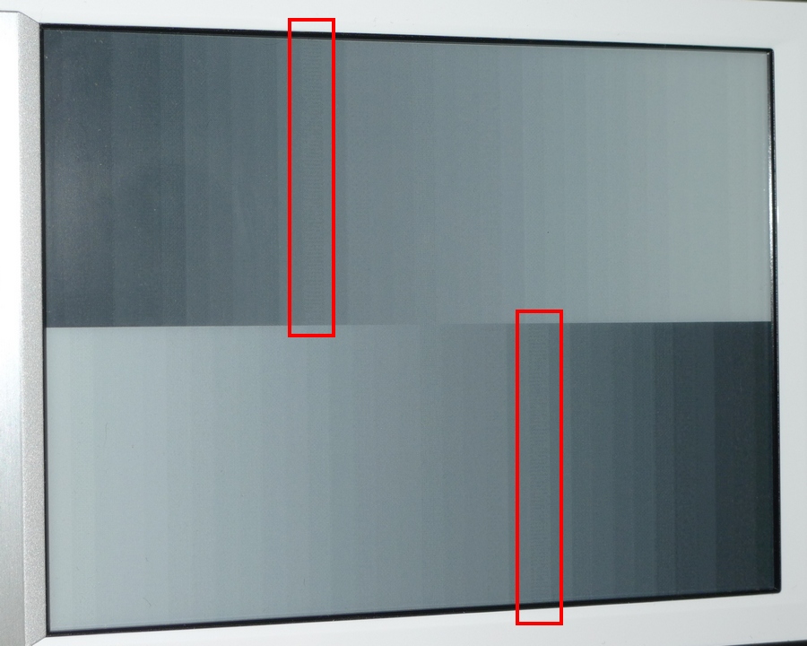 So I made some greyscale test images, in 32 greyscale. I know that T1's spec is 16 greyscale, so understandably there's some emulated greyscale display in between. But you can see in my attachments (the first two) that there are a few points where the grey block isn't clean and straight, but more like checkered. Anyway, I wonder if it's just my unit or if this is a rather widespread issue. I'm also attaching the test images, so please tell me what you see on your T1. (The small gif is the original that I used to create the test images.)