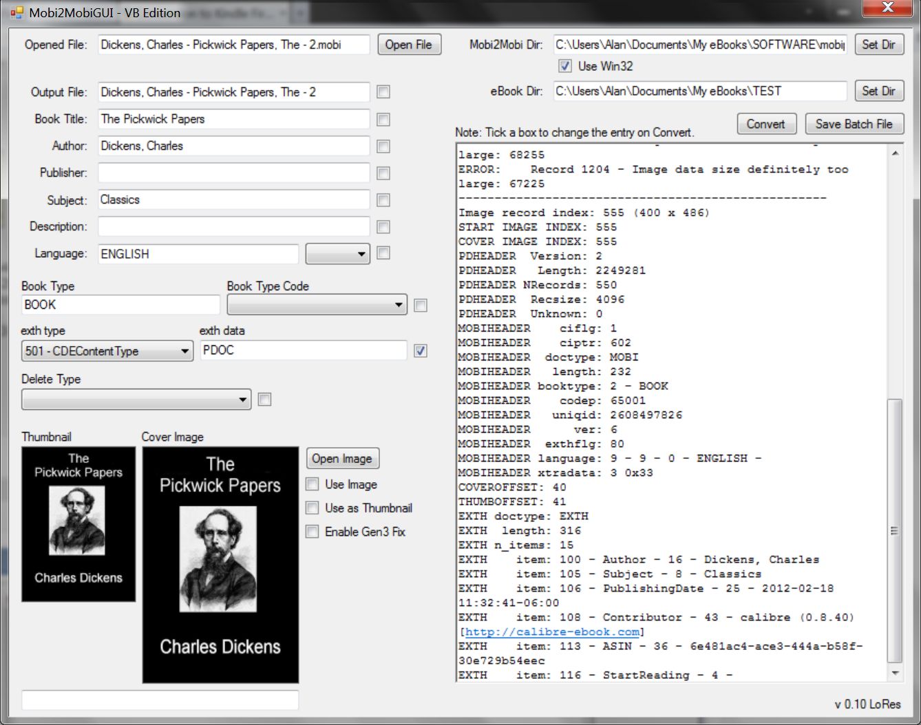 This program could be easily extended to properly change/ write any EXTH in either or both headers if that would prove useful to anyone.