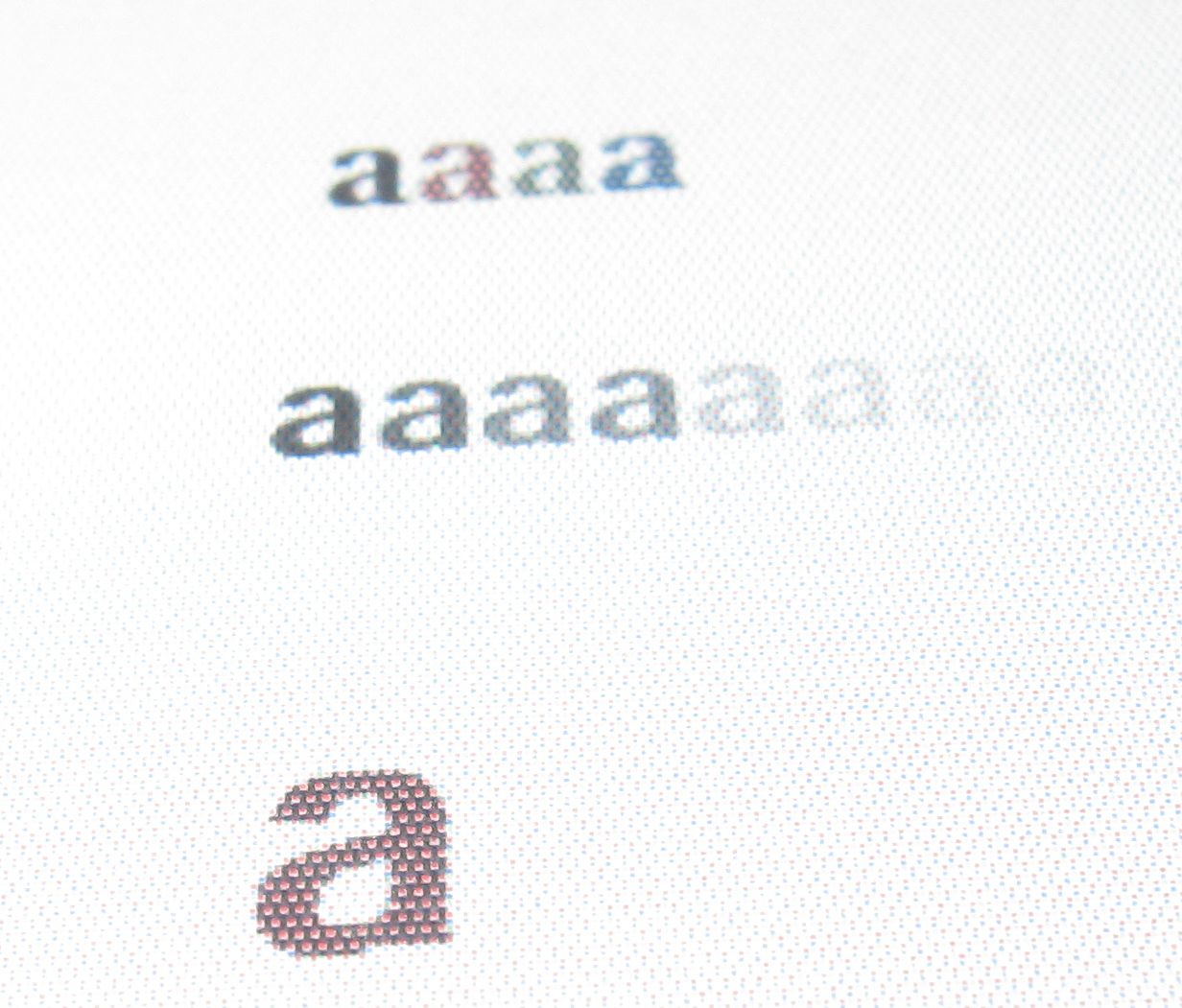 You can clearly see the 8 'a's in the small view of the gray scale picture, while in enlarged view the last a is barely visible!